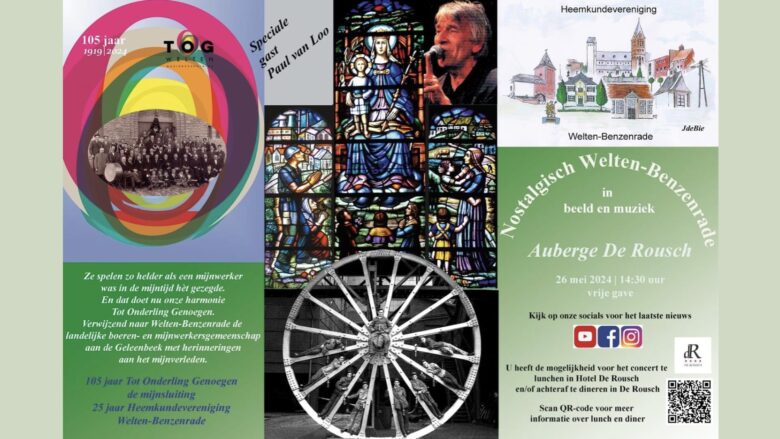 Wij hebben de handen ineengeslagen om voor u een uniek concert te verzorgen waarin we u meenemen door de geschiedenis van de gemeenschap Welten-Benzenrade middels verhalen, muziek en beelden. Hoe is de Geleenbeek ontstaan? Welke verbinding heeft Welten met de mijnen? Welke rol speelt het harmonieorkest in de gemeenschap? Kortom: een unieke concertervaring voor iedereen die de gemeenschap Welten-Benzenrade een warm hart toedraagt. Ook zal deze middag in het teken staan van 50 jaar mijnsluiting. En dat alles met medewerking van de bekende Limburgse zanger en woordkunstenaar: Paul van Loo!