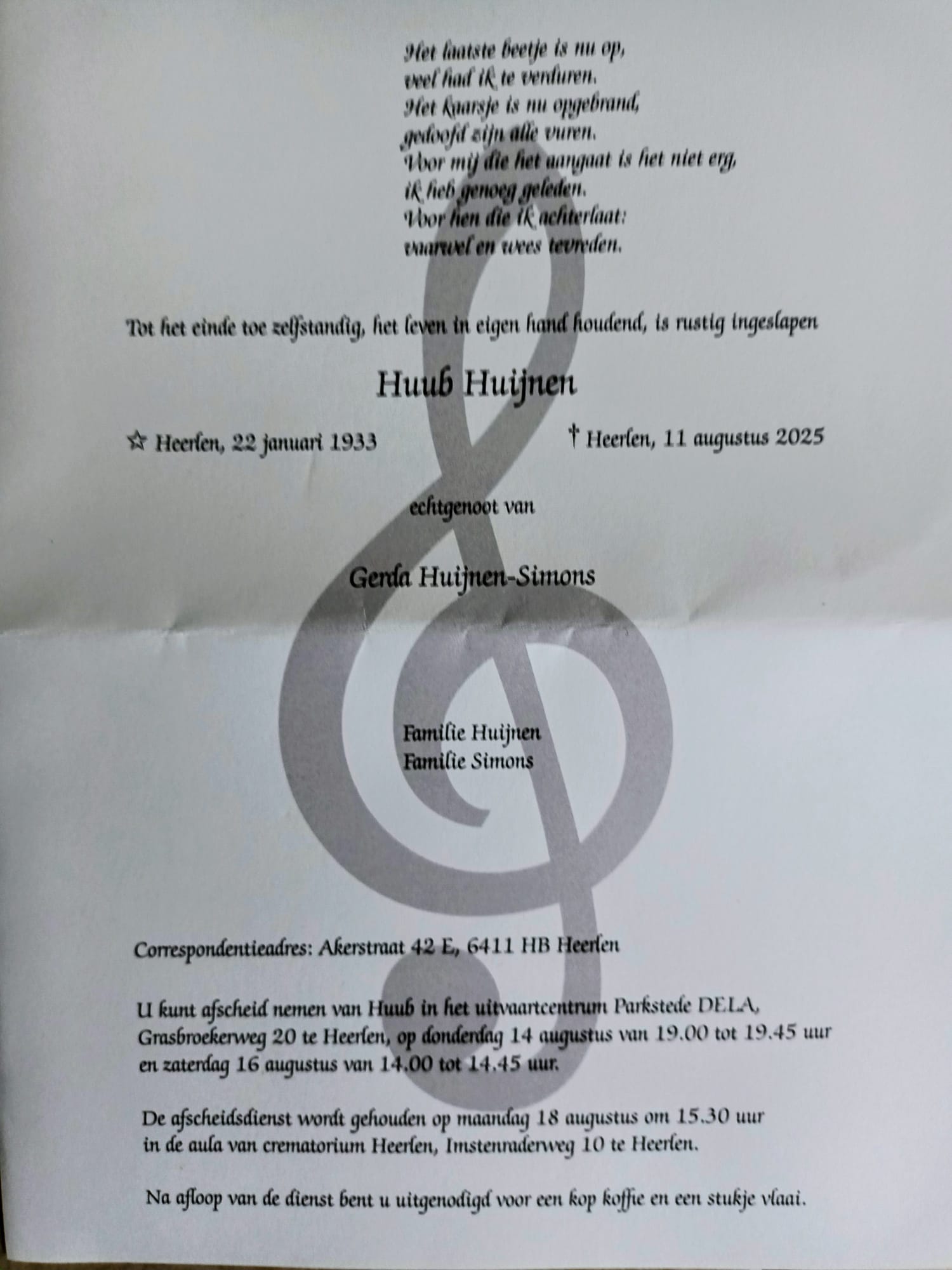 Overlijden Huub Huijnen Posted on13 augustus, 202514 augustus, 2025AuthorTeam PR Zie begeleidende brief aangaande het overlijden van Huub Huijnen.