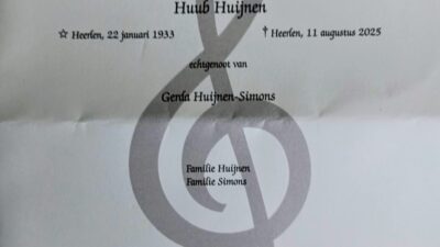 Zie begeleidende brief aangaande het overlijden van Huub Huijnen.