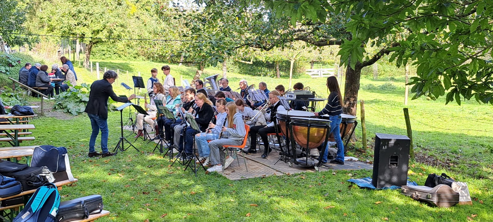 Daarna heeft ons Jeugdorkest de Bakdag van Hoogstamfruitboomgaard “de Loorenhof” Welten afgetrapt: te midden van groene weiden, koeien en goed gezelschap!