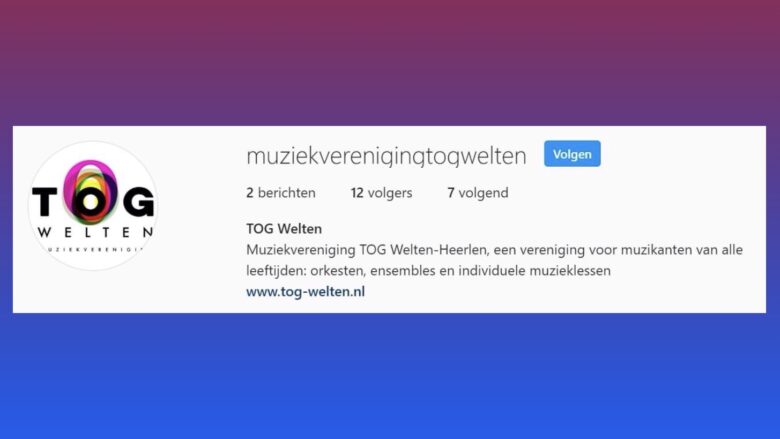 Muziekvereniging TOG is vanaf deze week ook actief op Instragram, onder de naam ‘MuziekverenigingTOGWelten’. Zie onderstaande link.